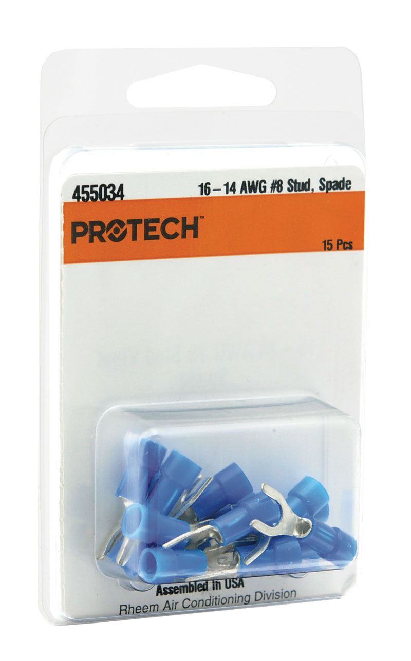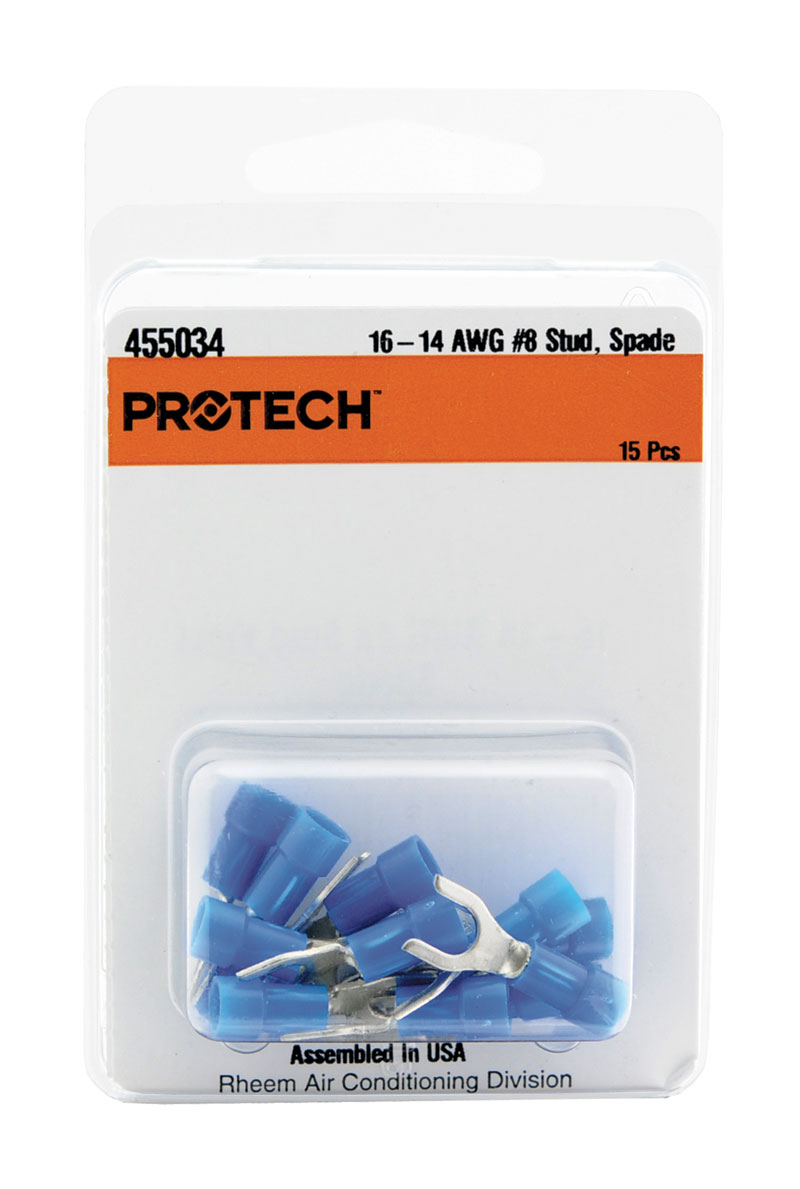 Ruud 455034 Package of 15 #8 Stud Insulated Spade Terminals for 16 and 14 Gauge Wire - Blue