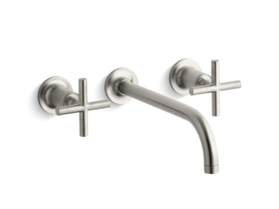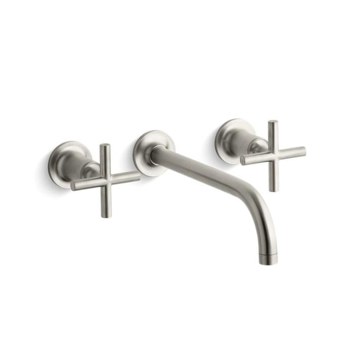Kohler® Widespread Bathroom Sink Faucet Trim, Purist®, 1.2 gpm, 8 in Center Distance, Stationary Spout, 9-1/2 in Spout Reach, Cross, 2 Handles, 3 Faucet Holes, Function: Traditional, Wall Mount, Ceramic Disc Valve/Cartridge, 9-1/2 in L x 8 in W x 8-1/2 in H, Solid Brass, Vibrant® Brushed Nickel