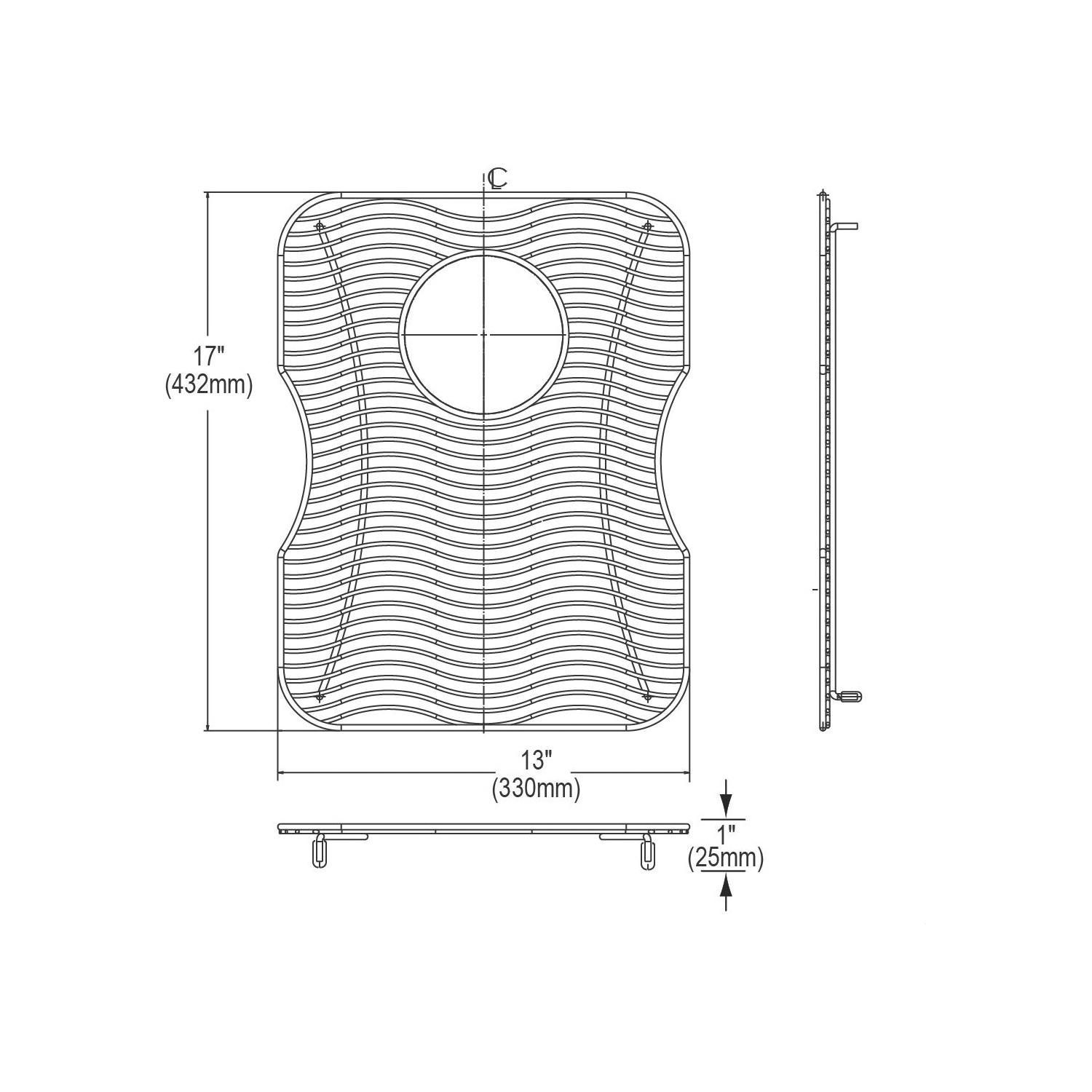 Elkay® Bottom Grid, 13 in Length, 17 in Width, 1 in Height, Center Rear Drain Opening Location, Stainless Steel, For Use With: 14 x 18 in Bowl, Import