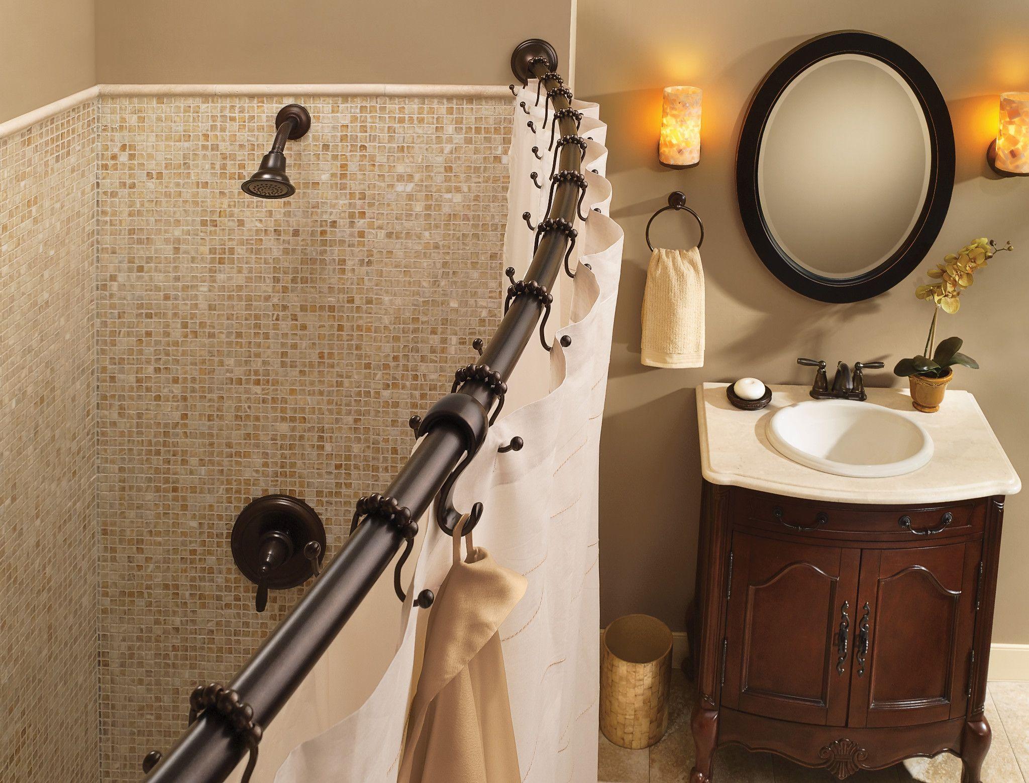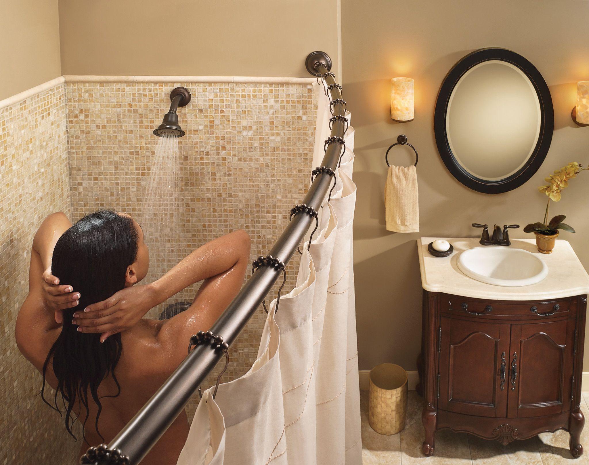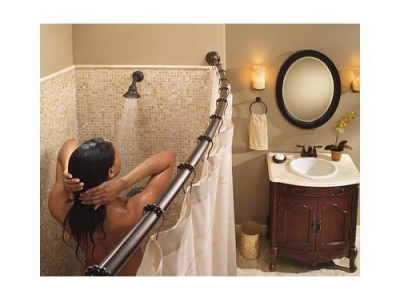 Enhance the appearance of your bathroom by adding a colorful shower curtain with the Creative Specialties by Moen Adjustable Length Curved Shower Rod. Made of metal, this shower rod is sturdy and long lasting. Available in multiple finishes, you can choos