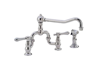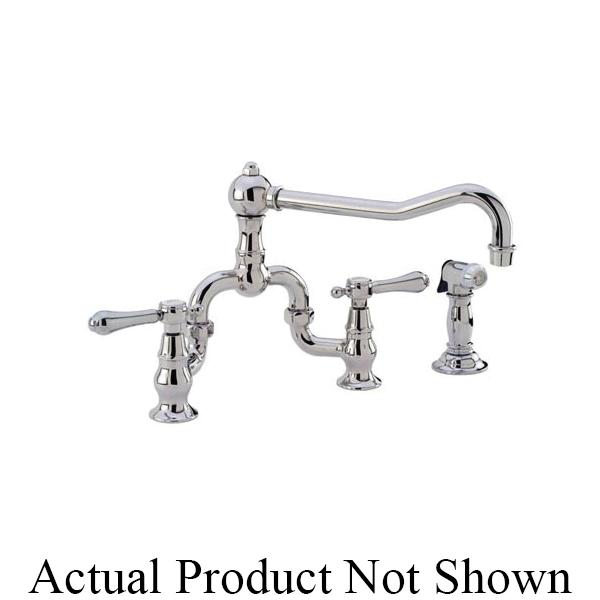 Newport Brass® Bridge Kitchen Faucet, Series: 9453-1, Chesterfield Collection, 1.8 gpm Flow Rate, 8 to 9-11/16 in Center Distance, Swivel Spout, 8-1/2 to 10-3/8 in Spout Reach, 6-9/16 in Spout Height, Traditional Lever Handle, 2 Handles, Side Spray(Y/N): Yes, 3 Faucet Holes, 1 in Faucet Hole, 2 in x 1/2-14 Connection, NPSM Connection, 1-7/16 in Maximum Deck Thickness, Deck Mounting, Quarter Turn Washerless Ceramic Disc Cartridge, Solid Brass, Antique Copper