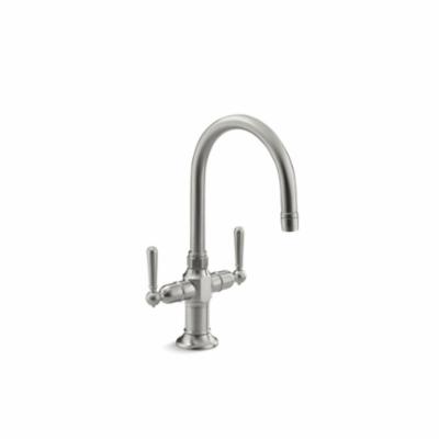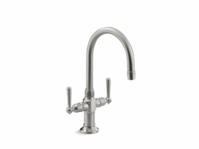 HiRise faucets combine the concepts of vintage plumbing with the strength and beauty of stainless steel to create truly sophisticated designs. This bar sink faucet features a high-arch gooseneck swing spout that allows plenty of room for prep or cleanup tasks. Two lever handles complete the classic look.