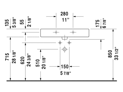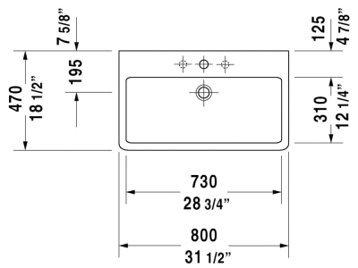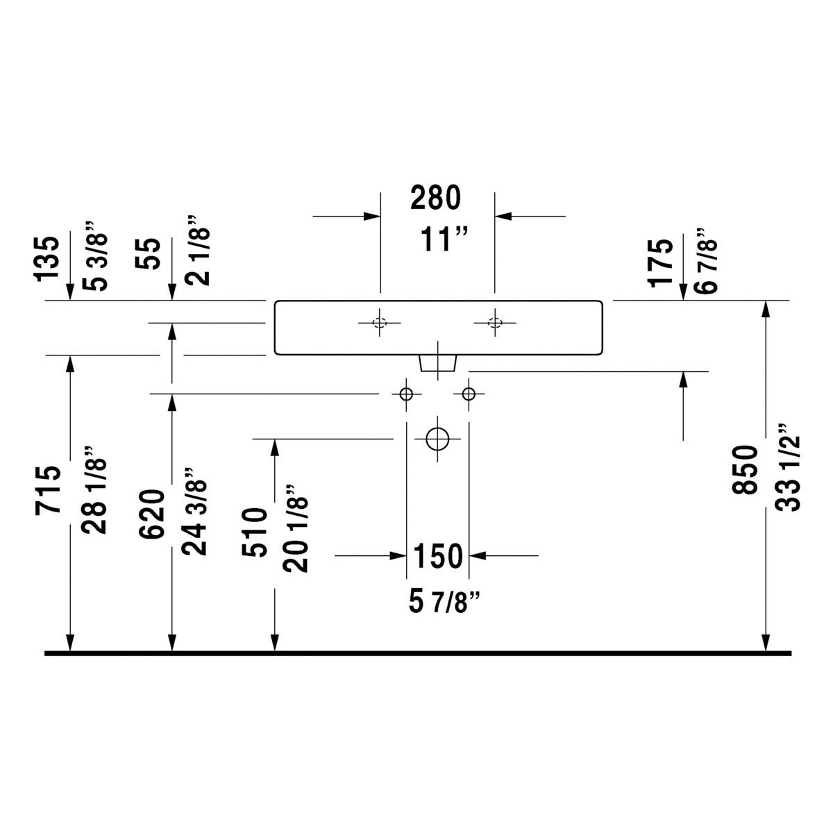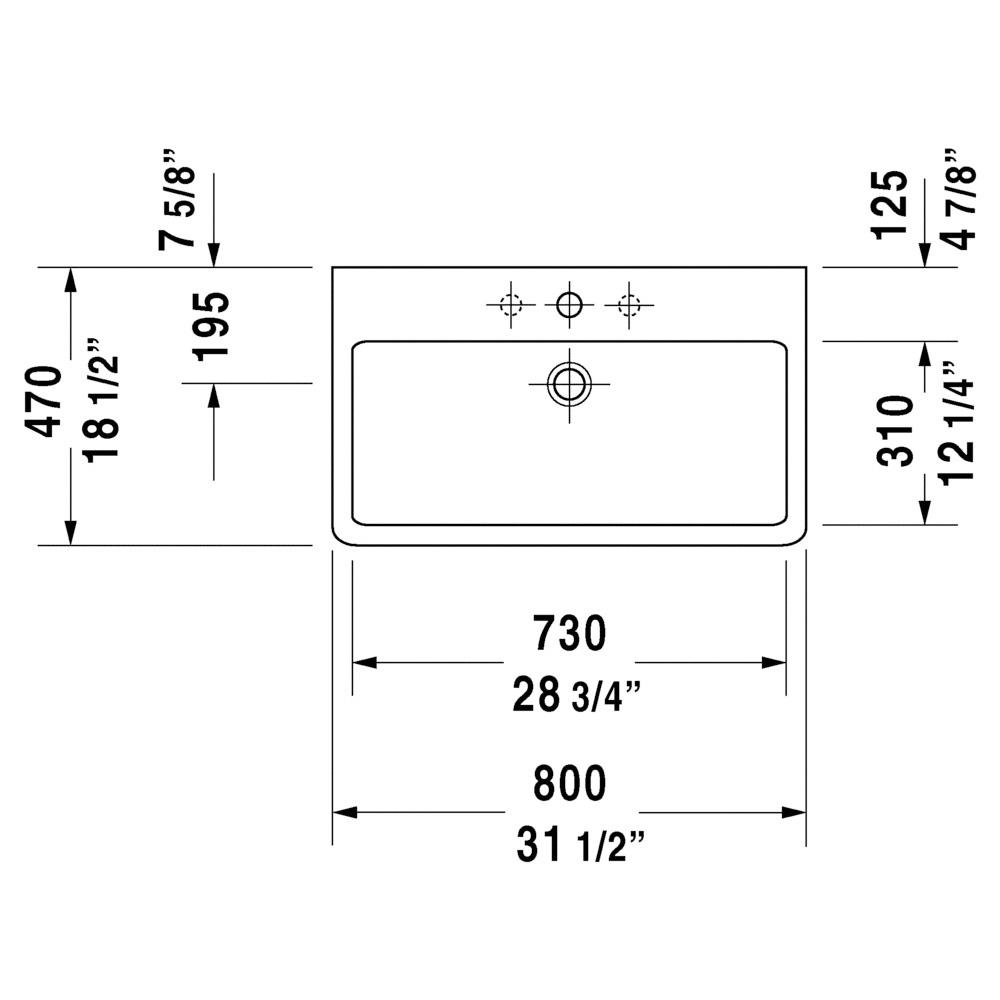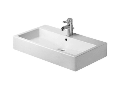 DURAVIT, 04548000001, Furniture Washbasin With Overflow and Faucet Deck, Series: 045480, Vero Collection, Rectangle Shape, 28-3/4 in L x 12-1/4 in W Bowl, 1 Faucet Holes, 31-1/2 in L x 18-1/2 in W x 6-7/8 in H Overall, Wall Mounting, Ceramic, White with WonderGliss, ADA Compliance: Yes, Import