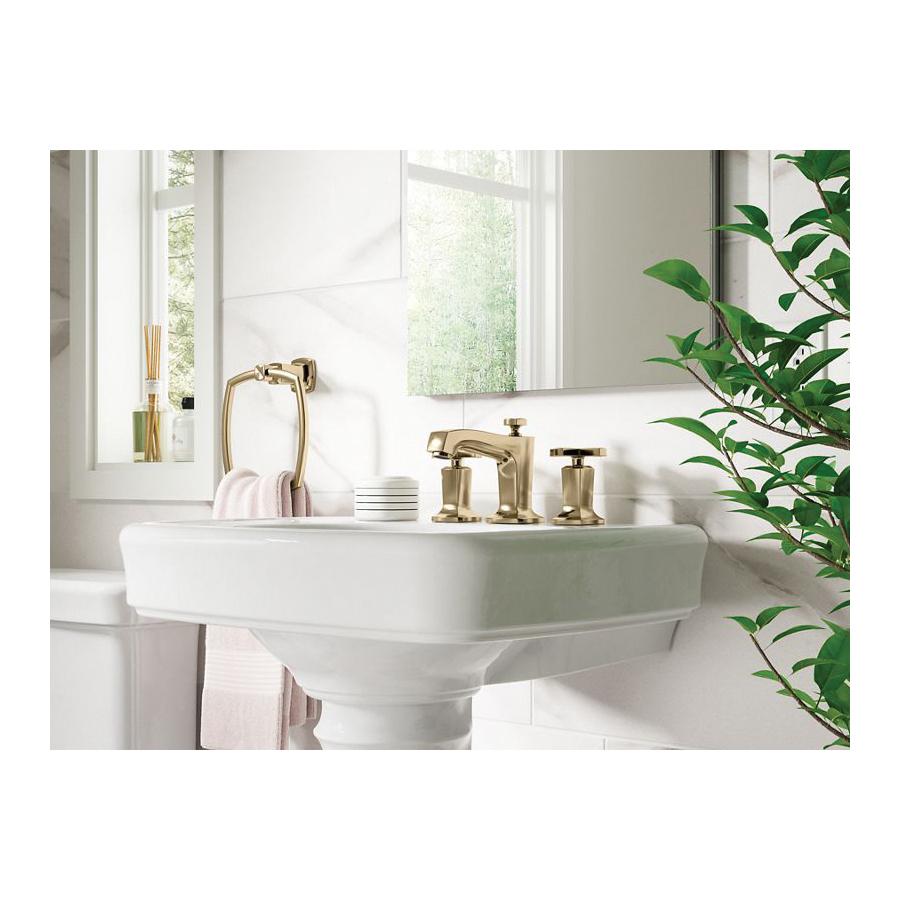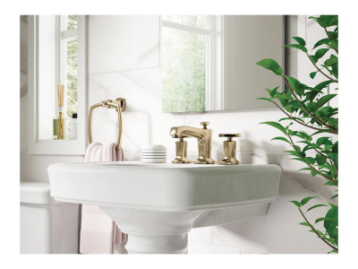 Kohler® Widespread Bathroom Sink Faucet, Margaux®, 1.2 gpm, 8 to 16 in Center Distance, Stationary Spout, 5-3/8 in Spout Reach, 3-1/8 in Spout Height, Cross, 2 Handles, Pop-Up Drain, 3 Faucet Holes, 1/2-14, NPSM, 1-3/8 in Maximum Deck Thickness, Ceramic Disc Valve/Cartridge, 5-3/8 in L x 8 in W x 5-1/4 in H, Solid Brass, Vibrant® French Gold