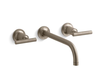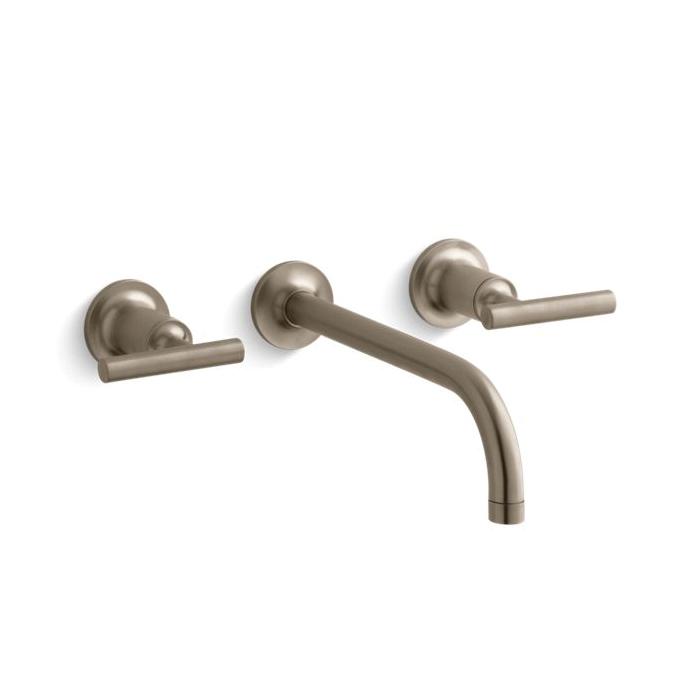 Kohler® Widespread Bathroom Sink Faucet Trim, Purist®, 1.2 gpm, 8 in Center Distance, Stationary Spout, 9-1/2 in Spout Reach, Lever, 2 Handles, 3 Faucet Holes, Function: Traditional, Wall Mount, Ceramic Disc Valve/Cartridge, 9-1/2 in L x 8 in W x 8-1/2 in H, Solid Brass, Vibrant® Brushed Bronze