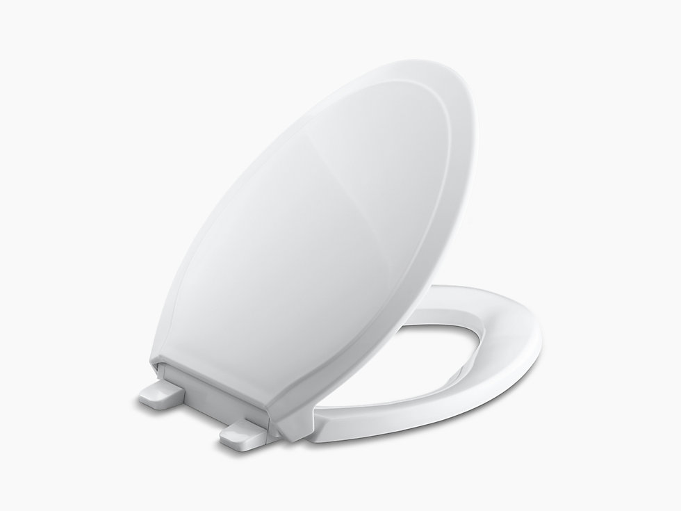 Kohler® 4734-0 Rutledge® Toilet Seat With Lid and Grip-Tight Bumper, Elongated Bowl, Closed Front, Polypropylene, White, Quick Release Hinge