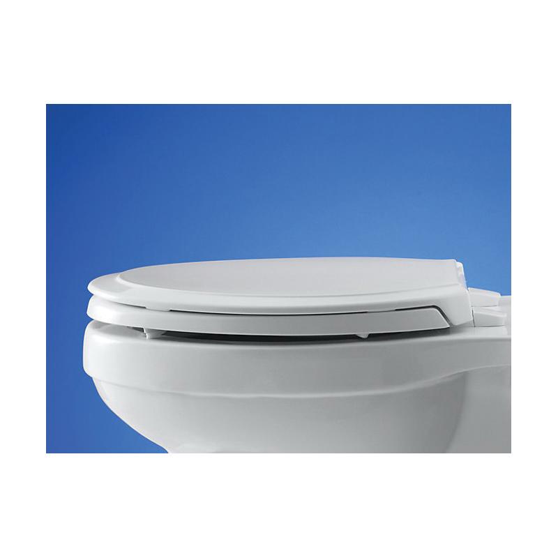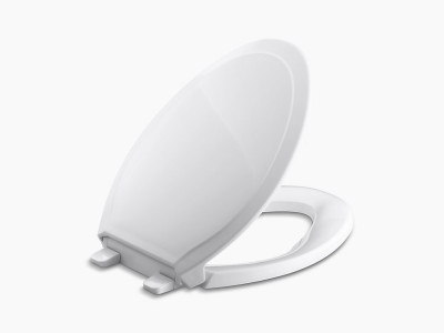 Kohler® Toilet Seat, Rutledge®, Elongated Bowl, Quick Release Hinge, 18-5/8 in Bolt to Seat Front, Closed Front, Plastic Hinge, 5-1/2 in Mounting Hole, Top Mount, 14-3/16 in Width, 1-5/16 in Height, 18-1/16 in Length, Polypropylene, White