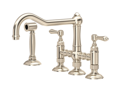 ROHL A1458LMWSSTN-2 Acqui Deck Mount Column Spout 3 Leg Bridge Kitchen Faucet with Sidespray - Satin Nickel