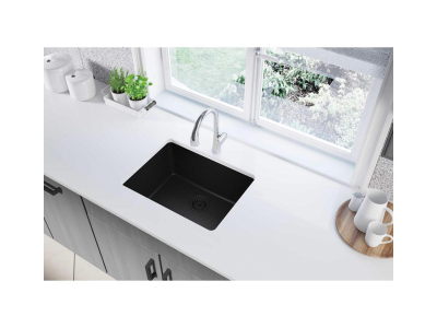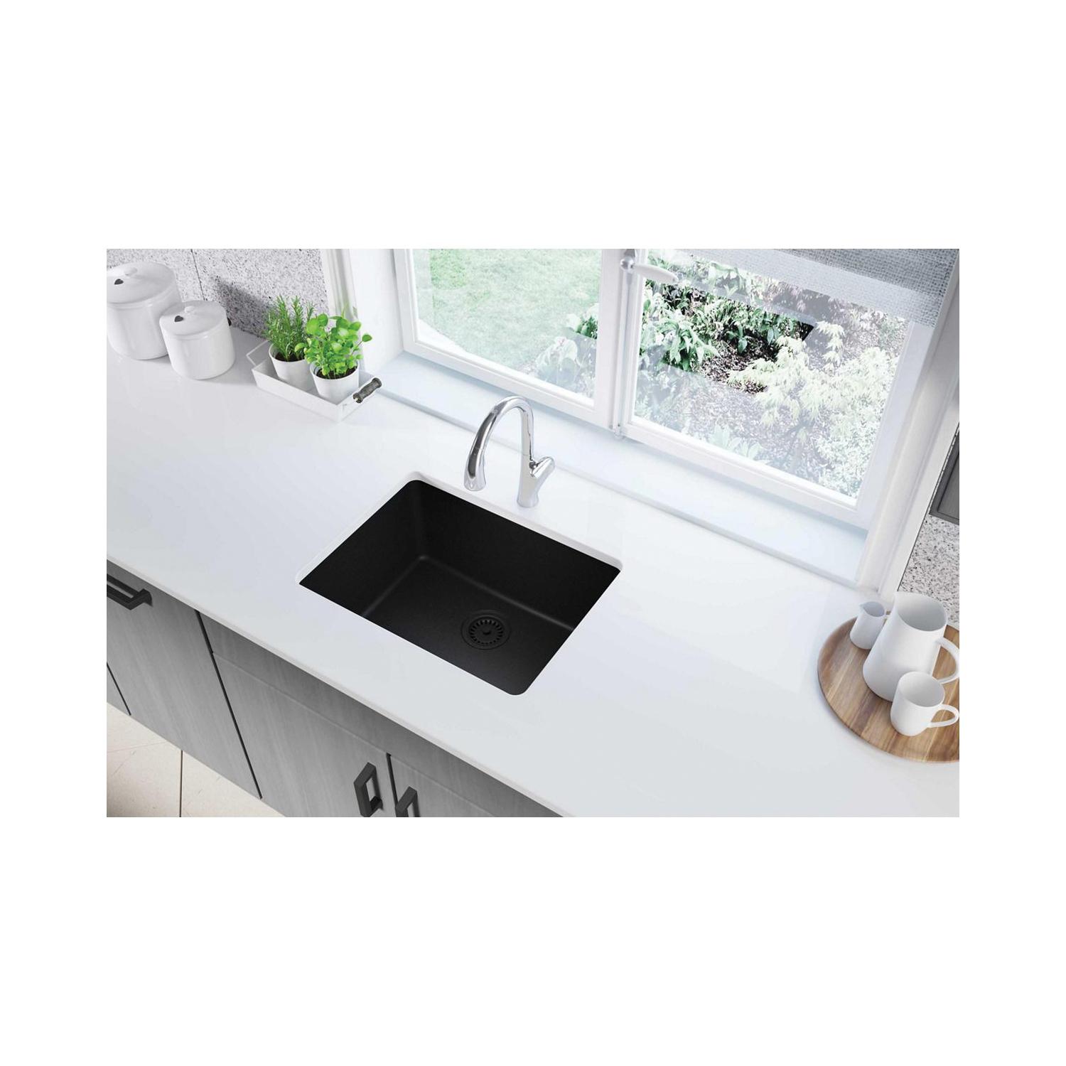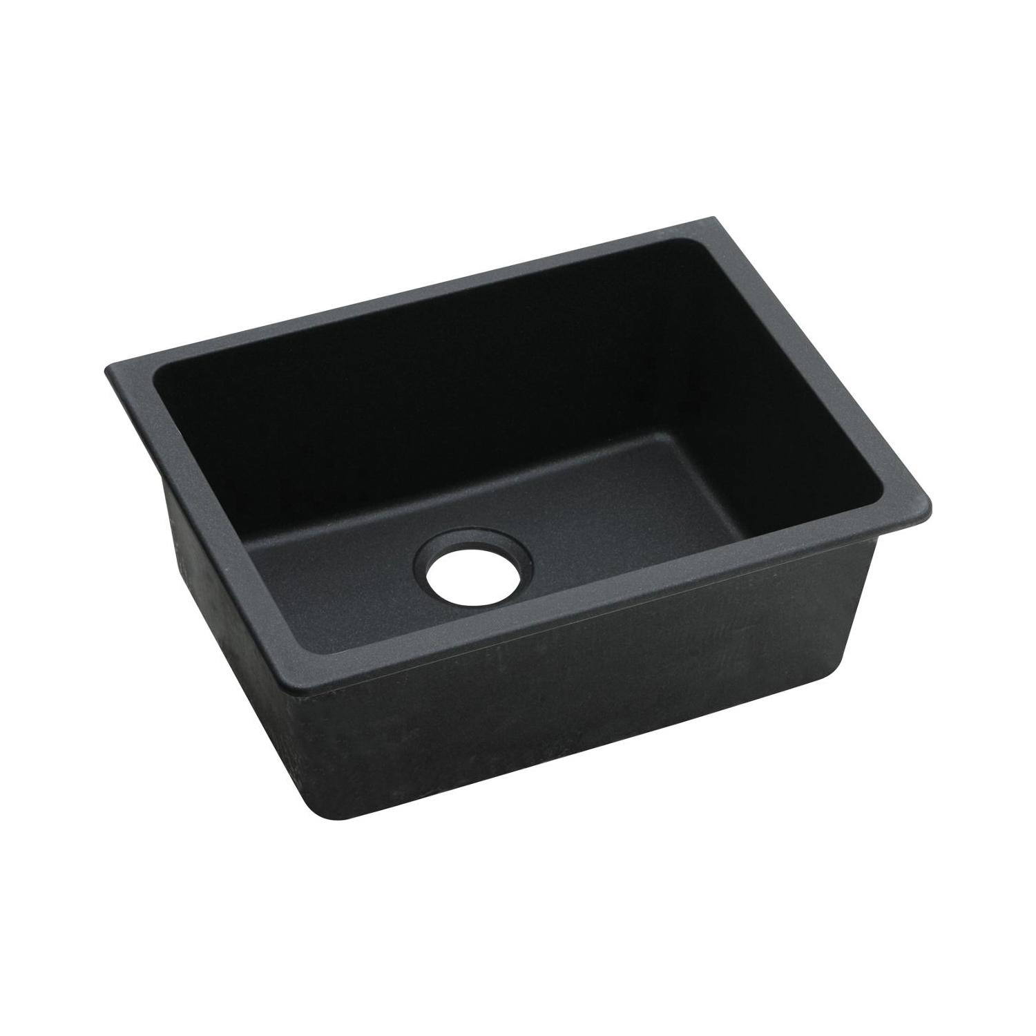 Elkay®, ELGU2522BK0, Kitchen Sink, Classic® Collection, 22-5/16 in Bowl Length, 16-7/16 in Bowl Width, 9-1/2 in Bowl Depth, 3-1/2 in Drain Opening, 1 Bowls, 24-5/8 in L x 18-1/2 in W x 9-1/2 in H Overall, Undermount Mounting, Quartz, Black, Import