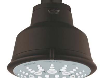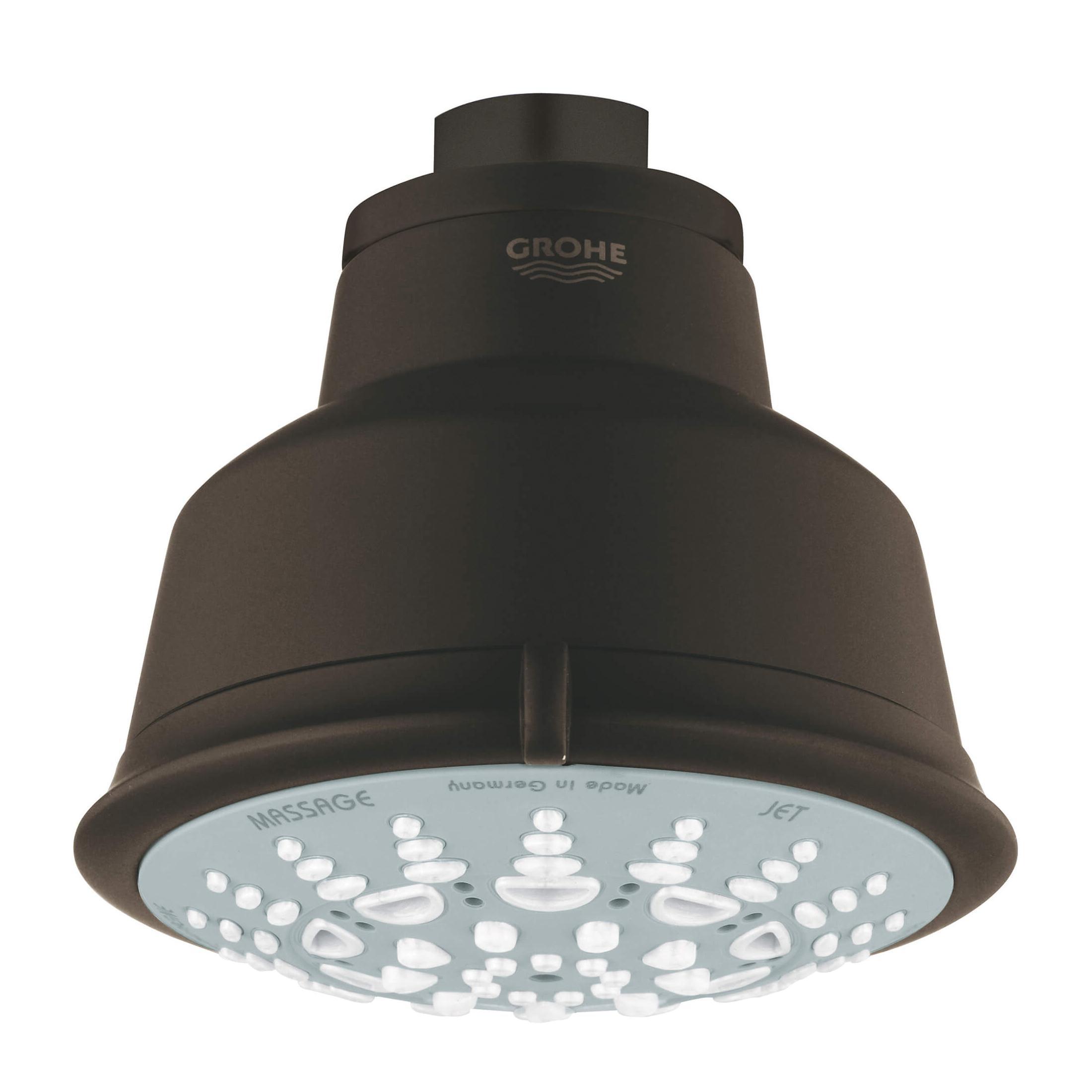GROHE Shower Head, Relexa Rustic 100, 2.5 gpm, 1/2 in, Round, Number of Sprays: 5, Spray Pattern: Wide, Wall Mount, 4.06 in Head, 3-/4 in Overall Height, ABS, Oil Rubbed Bronze, Import
