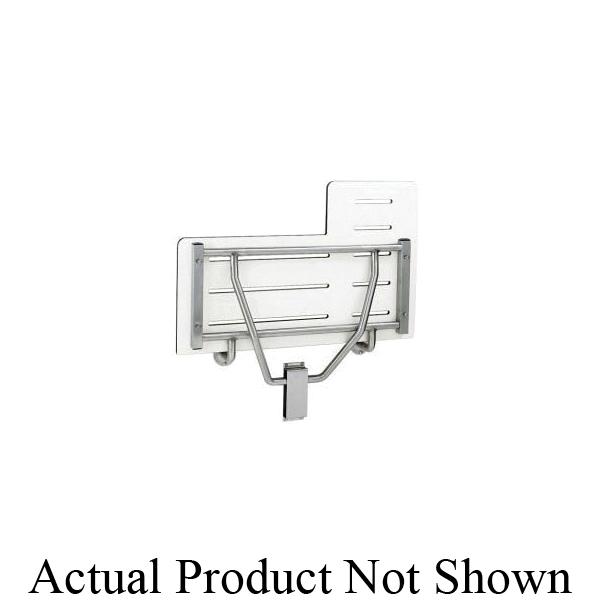 Bobrick Shower Seat, Reversible Folding Seat, L-Shaped Seat, Wall Mount, 360 lb, 33 in Overall Width, 22-5/16 in Overall Depth, Stainless Steel, White, 20-15/16 in D x 1/2 in THK Seat, Domestic
