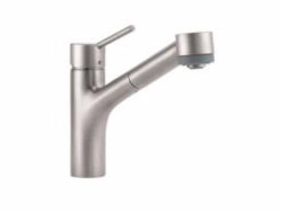 Hansgrohe 06462860 Talis S Pull-Out Kitchen Faucet, Residential, 1.75 gpm Flow Rate, 150 deg Swivel Spout, Steel Optik, 1 Handles, 1 Faucet Holes
