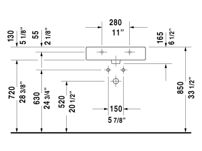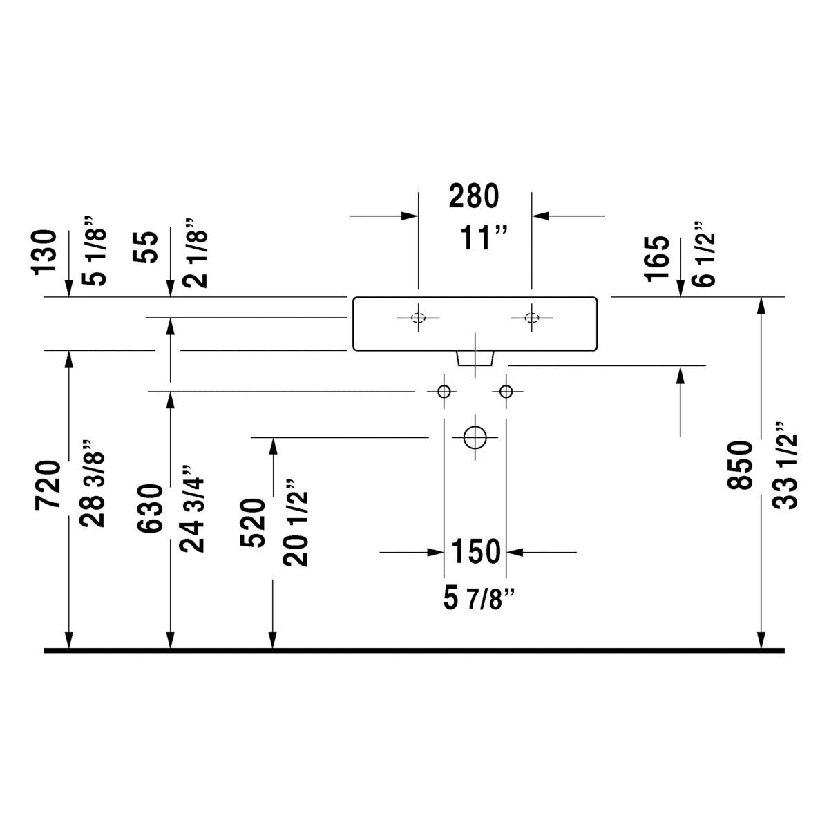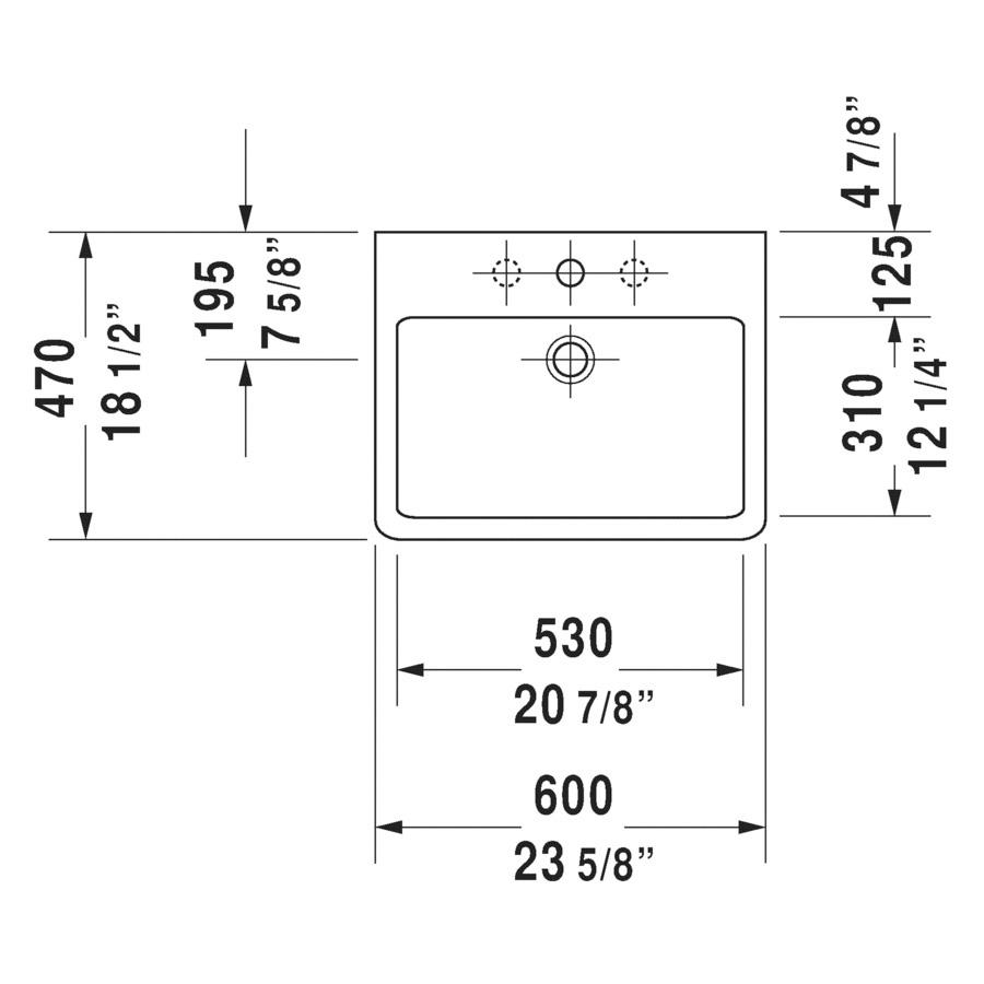 DURAVIT 0454600000 045460 Vero Furniture Washbasin With Overflow and Faucet Deck, Rectangle Shape, 23-5/8 in L x 18-1/2 in W x 6-1/2 in H, Wall Mounting, Ceramic, White, Import