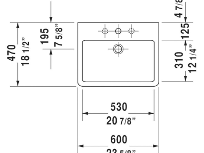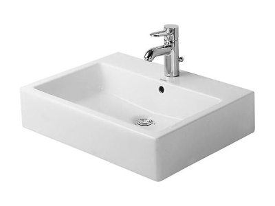 DURAVIT, 0454600000, Furniture Washbasin With Overflow and Faucet Deck, Series: 045460, Vero Collection, Rectangle Shape, 20-7/8 in L x 12-1/4 in W Bowl, 1 Faucet Holes, 23-5/8 in L x 18-1/2 in W x 6-1/2 in H Overall, Wall Mounting, Ceramic, White, ADA Compliance: No, Import