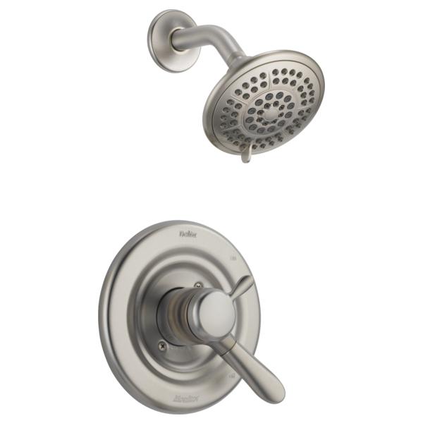 With separate handles for volume and temperature control, this Delta tub/shower provides a more refined showering experience. Simply set the water at your preferred temperature and turn the shower on or off with the volume control handle - without interrupting your set temperature. While other products may gather unsightly mineral build-up over time, Delta soft rubber Touch-Clean® spray holes allow any mineral residue to simply be wiped away for an instantly refreshed look – with no need for soaking or the aid of chemical cleaners. Delta® pressure-balance valves use Monitor® Technology to protect you and your family from sudden temperature changes. This Brilliance Stainless finish has subtle, warm undertones which make it an excellent match with nickel or stainless steel and is extremely versatile, complementing nearly any look, be it traditional, transitional or contemporary.