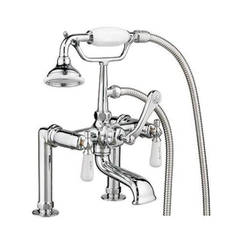 Barclay Tub Filler, Clawfoot, Series: 4601, 3.7 gpm, 7 in Center Distance, Elephant Spout, 5 in Spout Reach, Porcelain Lever, 3 Handles, 2 Faucet Holes, Hand Shower Yes/No: Yes, Rim Mount, 1/4 Turn Ceramic Disc Valve/Cartridge, 13 in H, Brass, Polished Chrome, Import