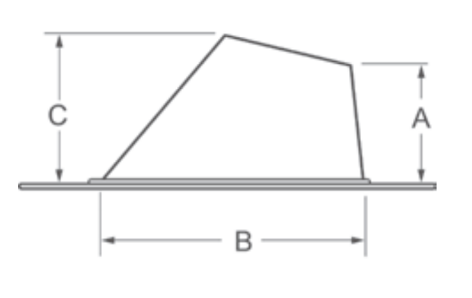 - Dimension "A" is 5-3/8" - Dimension "B" is 10" - Dimension "C" is 8-13/16"