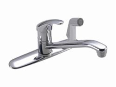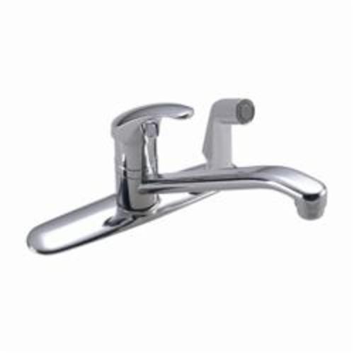 Symmons® Kitchen Faucet, Series: S-23, Origins®, 1 gpm, 8 in Center Distance, Swivel Spout, 8-3/4 in Spout Reach, 5-1/4 in Spout Height, 3/8 in Hose, Lever, 1 Handles, Yes Side Spray(Y/N), 1 Faucet Holes, 1/4-20, UNC, Spray Pattern: Aerated Stream, 1-1/4 in Maximum Deck Thickness, Deck Mount, Ceramic Disc Valve/Cartridge, 6-1/4 in H, Metal, Polished Chrome