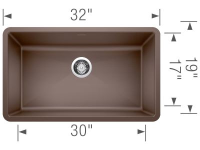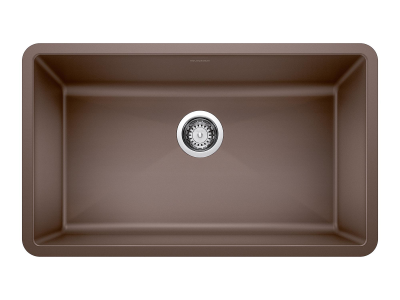 Blanco, 440147, Kitchen Sink, PRECIS™ SILGRANIT® II Collection, Rectangle Shape, 30 in Bowl Length, 17 in Bowl Width, 9-1/2 in Bowl Depth, 3-1/2 in Drain Opening, 1 Bowls, 32 in L x 19 in W Overall, Undermount Mounting, Solid Granite, Cafe Brown, Import