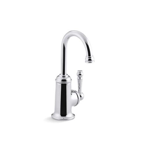 Kohler® Beverage Faucet, Traditional, Wellspring®, 1.6 gpm, High-Arc Rotating Gooseneck Spout, 3 in Spout Reach, 7-5/8 in Spout Height, Lever, 1 Handles, 1 Faucet Holes, 3/8 in, Compression, 5/8 in Maximum Deck Thickness, Deck Mount, Ceramic Disc Valve/Cartridge, 3 in L x 2 in W x 7-5/8 in H, Solid Brass, Polished Chrome
