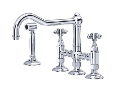 ROHL A1458XMWSAPC-2 Acqui Deck Mount Column Spout 3 Leg Bridge Kitchen Faucet with Sidespray - Polished Chrome