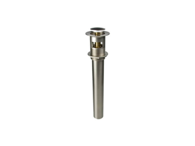 A soft touch lavatory drain for sinks and vessels with overflow. Fully plated brass drain body and tailpiece. Features EZ-Click(TM) round pop-up drain mechanism.