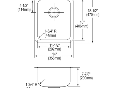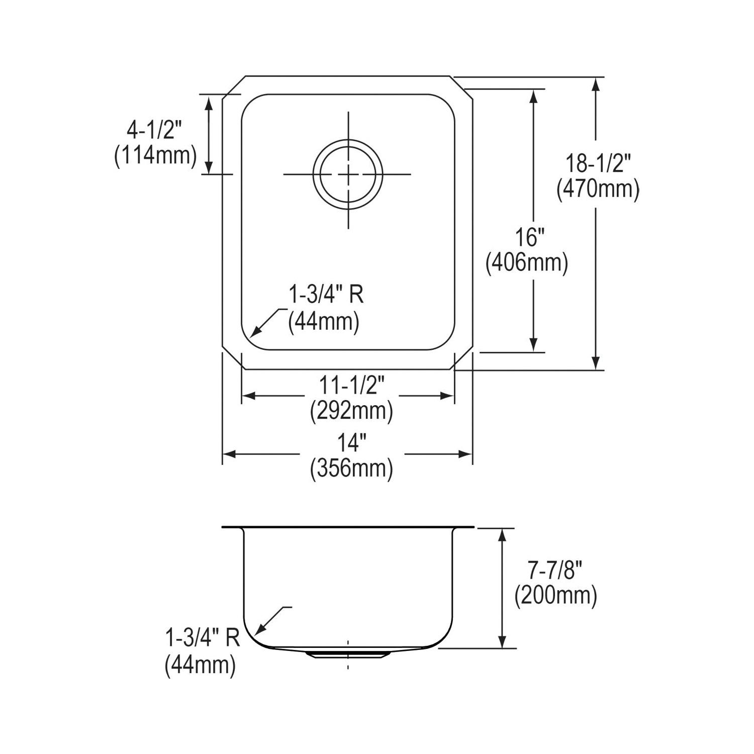 Elkay®, ELUH1116, Kitchen Sink, Lustertone™ Classic Collection, 11-1/2 in Bowl Length, 16 in Bowl Width, 7-7/8 in Bowl Depth, 3-1/2 in Drain Opening, 1 Bowls, 14 in L x 18-1/2 in W x 7-7/8 in H Overall, Undermount Mounting, 18 ga 304 Stainless Steel, Domestic