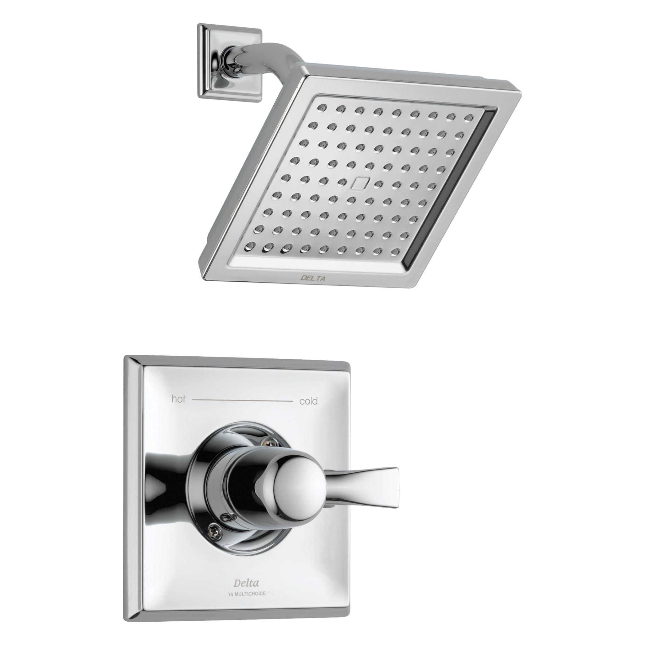 DELTA® Shower Trim, Series: Monitor® 14, Dryden™ Collection, 2.5 gpm Shower Flow Rate, 1 Handles, Lever Handle, 7 in H Trim, 1222 Pressure Balanced, Hand Shower: No, Spray Pattern: Full, 1 Spray Functions, 80 psi Pressure, Wall Mounting, For Use With: MultiChoice® R10000 Series Universal Rough-In Valve Body, Solid Brass, Polished Chrome, Domestic, Commercial Commercial/Residential