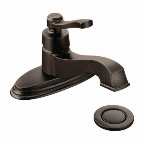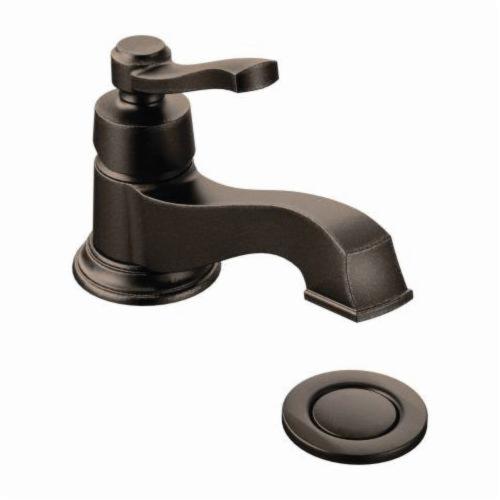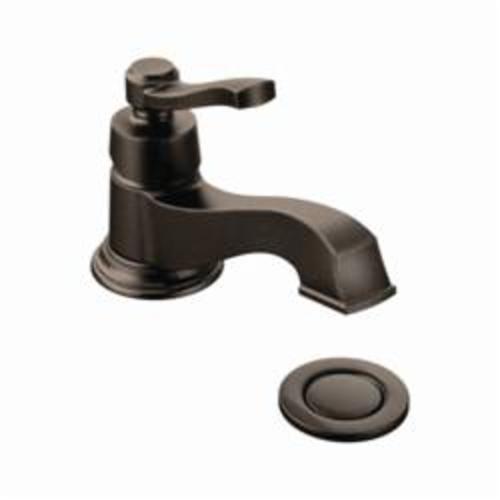 Moen® Bathroom Faucet, Rothbury™, 1.2 to 1.5 gpm, Fixed Spout, 5-5/16 in Spout Reach, 2-1/16 in Spout Height, Lever, 1 Handle, Pop-Up Drain, 1 Faucet Hole, 3/8 in, Compression, Function: Traditional, 3-1/8 in Maximum Deck Thickness, Deck Mount, 1255 Duralast® Ceramic Disc Valve/Cartridge, 9.25 in W x 13.62 in D x 5.75 in H, Metal, Oil Rubbed Bronze, Domestic