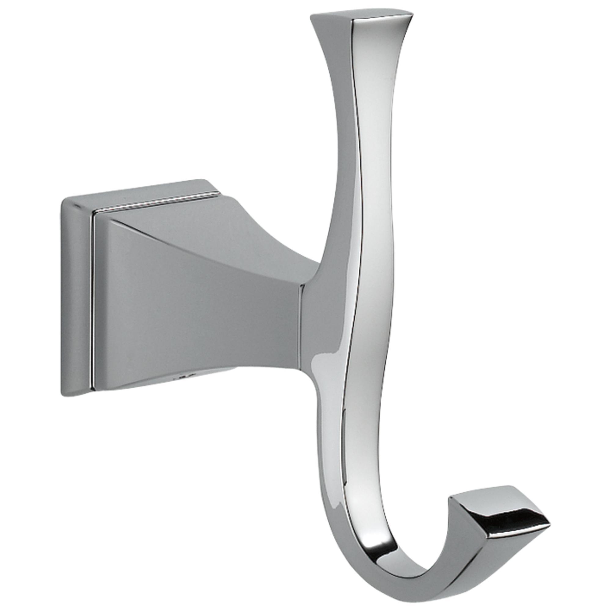 DELTA® Robe Hook, Dryden™ Collection, 2 Hooks, 1-3/4 in Diameter Base, 1-3/4 in Overall Width, 4-11/16 in Overall Depth, 5 in Overall Height, Wall Mounting, Polished Chrome, Import
