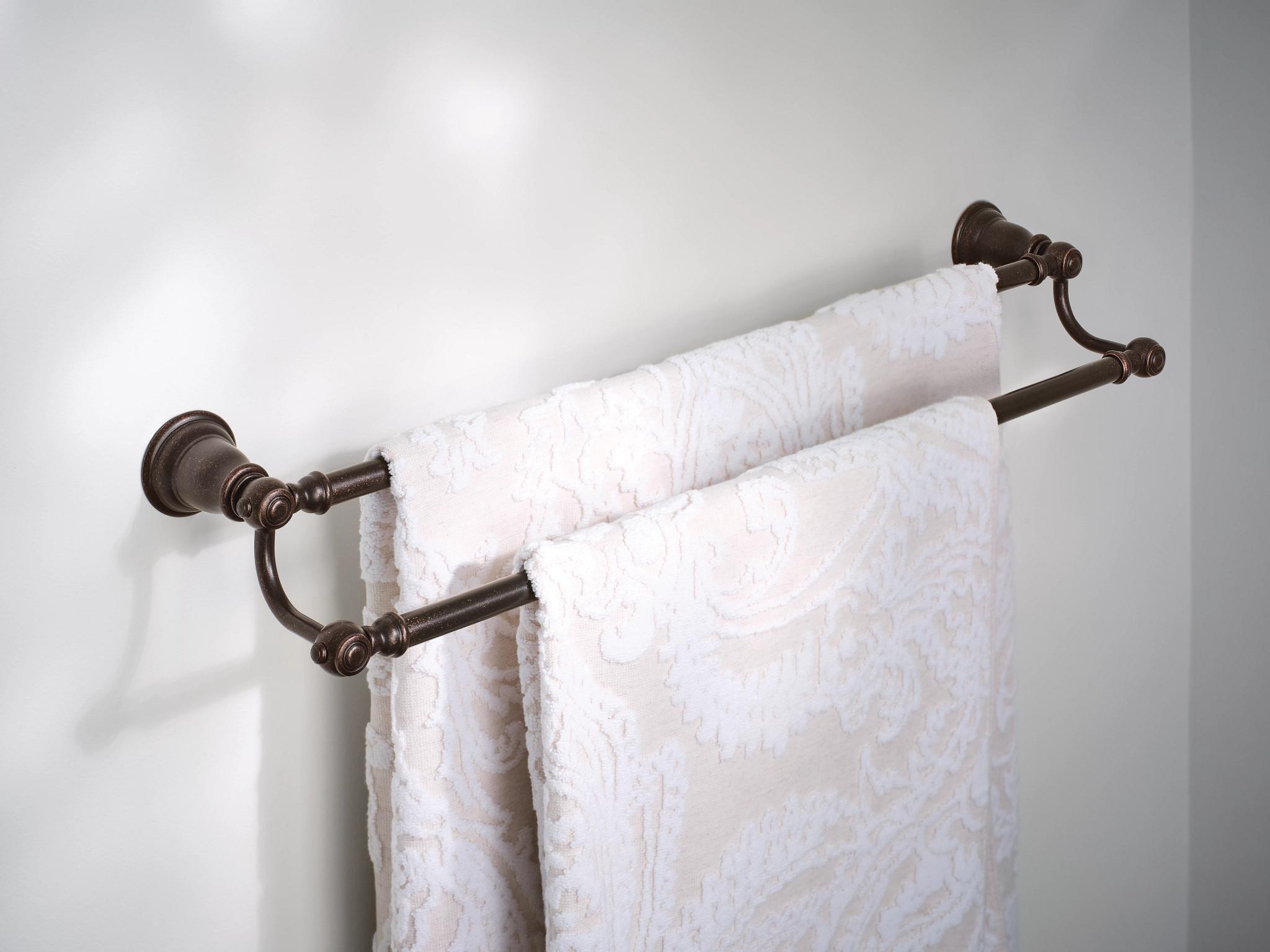 Moen® Double Towel Bar, Kingsley®, 24 in Bar Length, 26.2 in Overall Length, 5.86 in Overall Depth, 3.58 in Overall Height, Aluminum, Oil Rubbed Bronze, Import