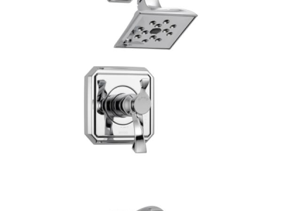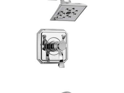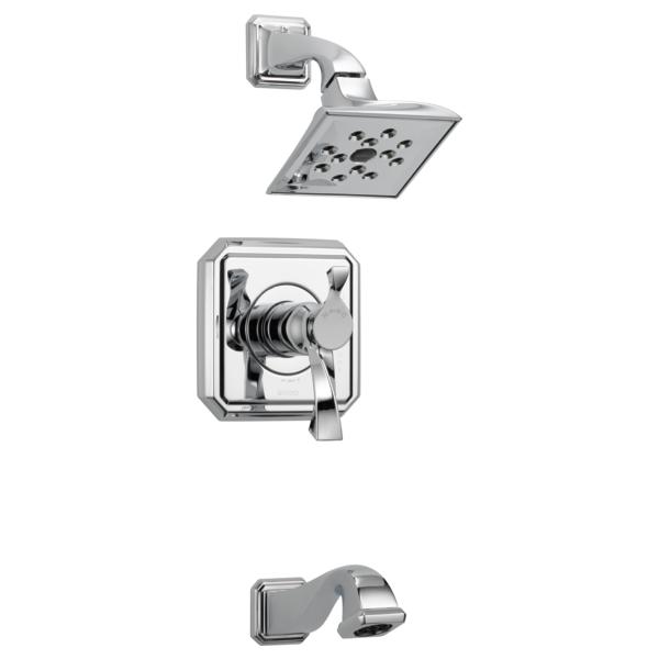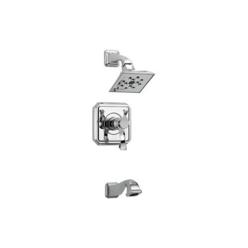 Brizo® Tub and Shower Faucet Trim, Series: TempAssure®, Virage® Collection, 2 gpm Shower Flow Rate, Pull-Down Diverter Spout, 7-3/4 in Spout Reach, 1 Handles, Metal Lever Handle, 7-1/2 in H Trim, Thermostatic Ceramic Cartridge, Hand Shower: No, Spray Pattern: Full Body, 1 Spray Functions, 80 psi Pressure, Wall Mounting, Cast Brass, Polished Chrome, Domestic