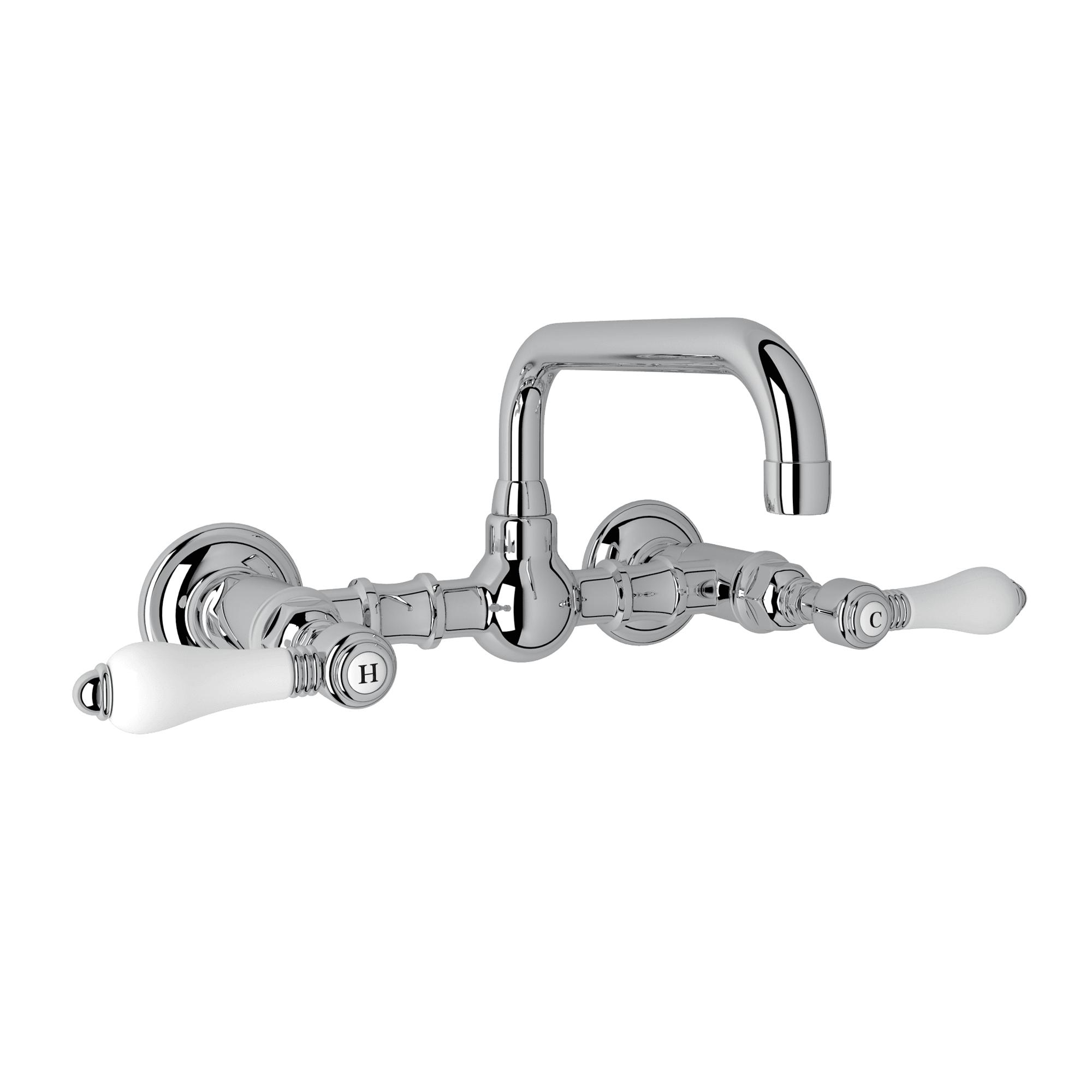 Rohl®, A1423LPAPC-2, Bathroom Faucet, Traditional, Acqui Collection, 1.2 gpm Flow Rate, Lever Handle, 2 Faucet Holes, Wall Mounting, Ceramic Disc Cartridge, Brass, Polished Chrome