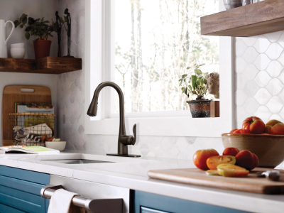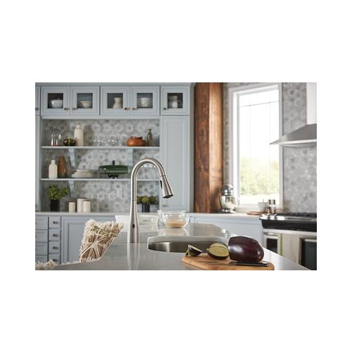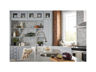 Understated style boasting versatile functionality meets its match in this kitchen faucet with pull-down sprayer. The Arbor Single-Handle Faucet features Reflex Technology which provides smooth operation, easy movement and the pull-out faucet’s sprayhead easy docks into place. Arbor is constructed with the highest standards and offers a Limited Lifetime Warranty against leaks, drips and more. Arbor's smooth profile is tailored to perfection. The slight flair of the handle and the curve of the spout make this a transitional look that works with a variety of decorating styles.