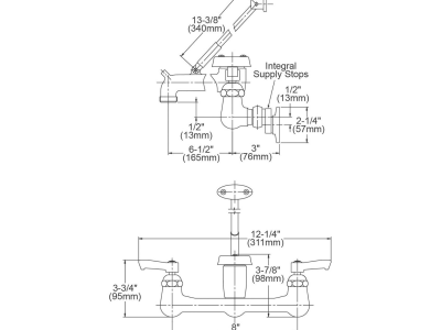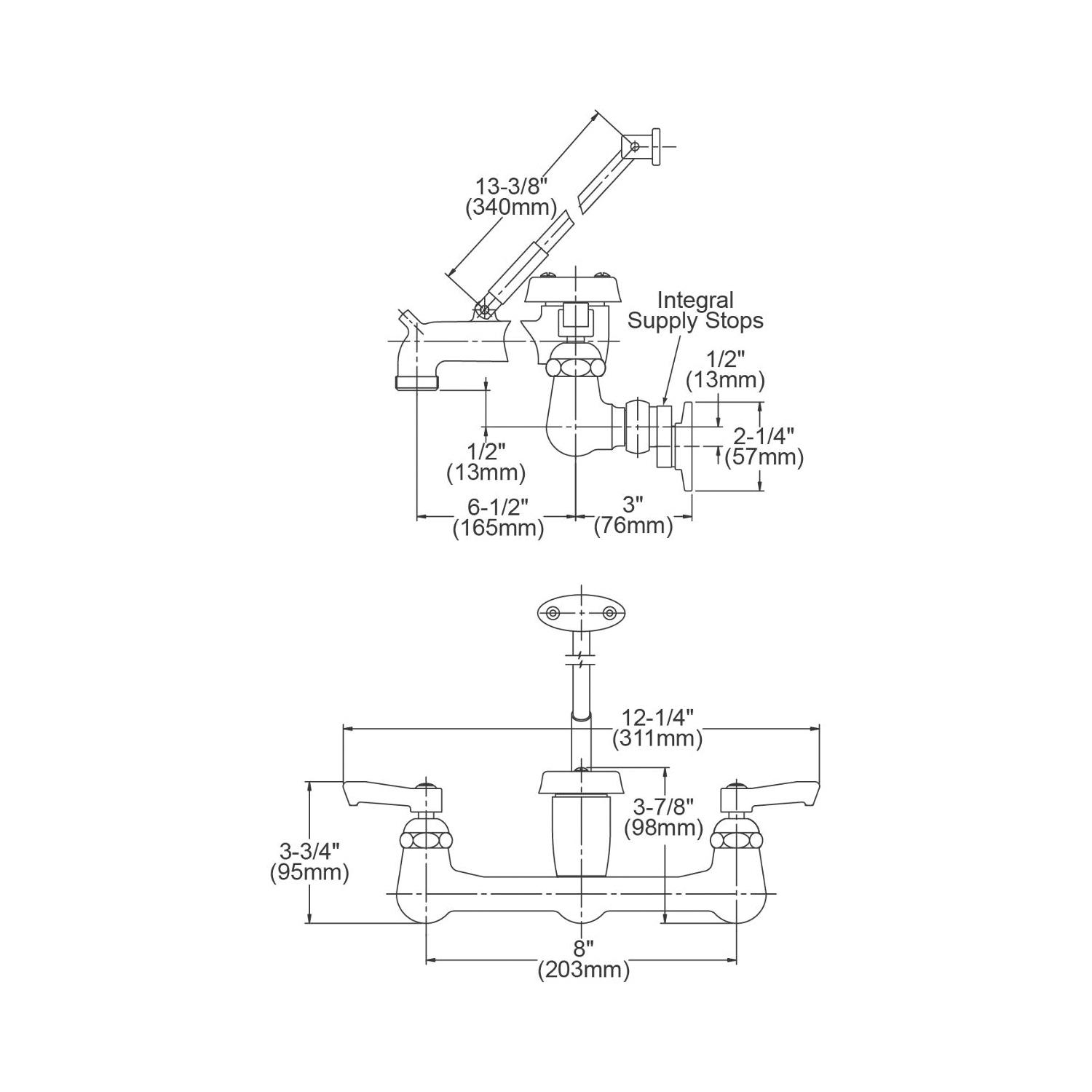 Elkay® Service/Utility Faucet, 4 gpm Flow Rate, 8 in Center Distance, Fixed Spout, 6-1/2 in Spout Reach, 3-7/8 in Spout Height, Lever Handle, 2 Handles, 2 Faucet Holes, 1/2 in Connection, FNPT Connection, 1/2 in Maximum Deck Thickness, Wall Mounting, Ceramic Quarter Turn, Solid Brass, Polished Chrome, Import