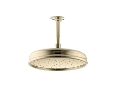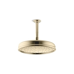 Kohler® Rainhead, Traditional, 2.5 gpm, 1/2 in Connection, Round Shape, Number of Sprays: 1, Spray Pattern: Rain, Ceiling Mounting, 10-7/16 in Dia x 3-3/4 in H Head, Brass, Vibrant® French Gold