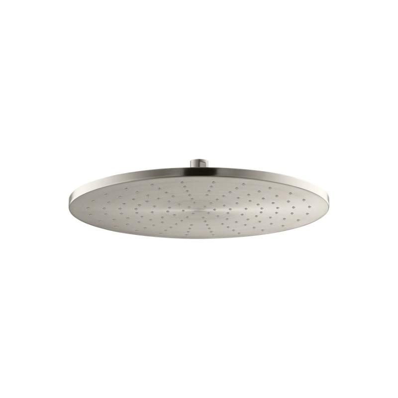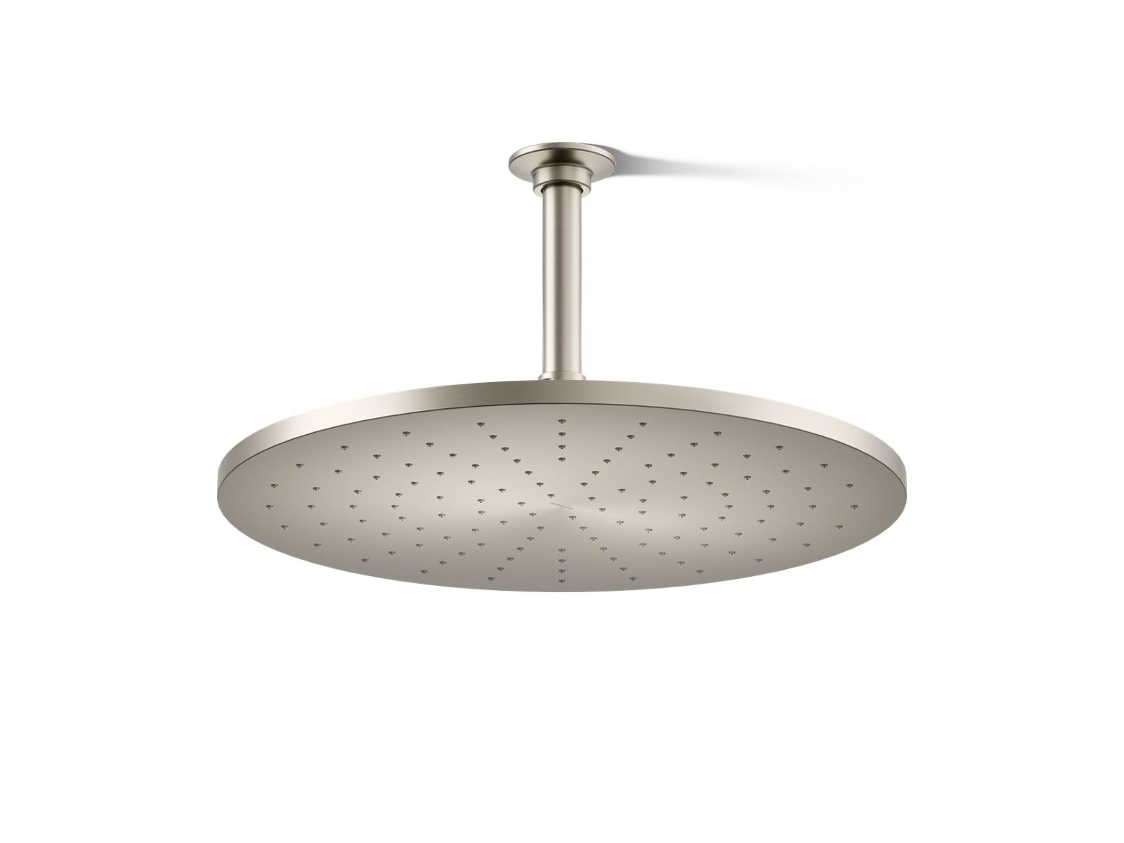 Kohler® Raincan Shower Head, Contemporary, 2.5 gpm, 1/2 in NPT Connection, Round Shape, Spray Pattern: Rain, Ceiling Mounting, 14 in Overall Length, 14 in Overall Width, 2-3/4 in Overall Height, Brass, Vibrant® Brushed Nickel