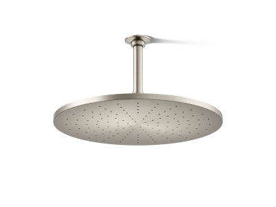 Enjoy a shower that simulates the soaking deluge of a warm summer downpour. This KOHLER® contemporary-style round ceiling-mount/wall-mount rainhead features innovative Katalyst® air-induction technology, which efficiently mixes air and water to produce large water droplets and deliver a powerful, thoroughly drenching overhead shower experience. Its clean design and durable finish coordinate with many other KOHLER® faucets and accessories.