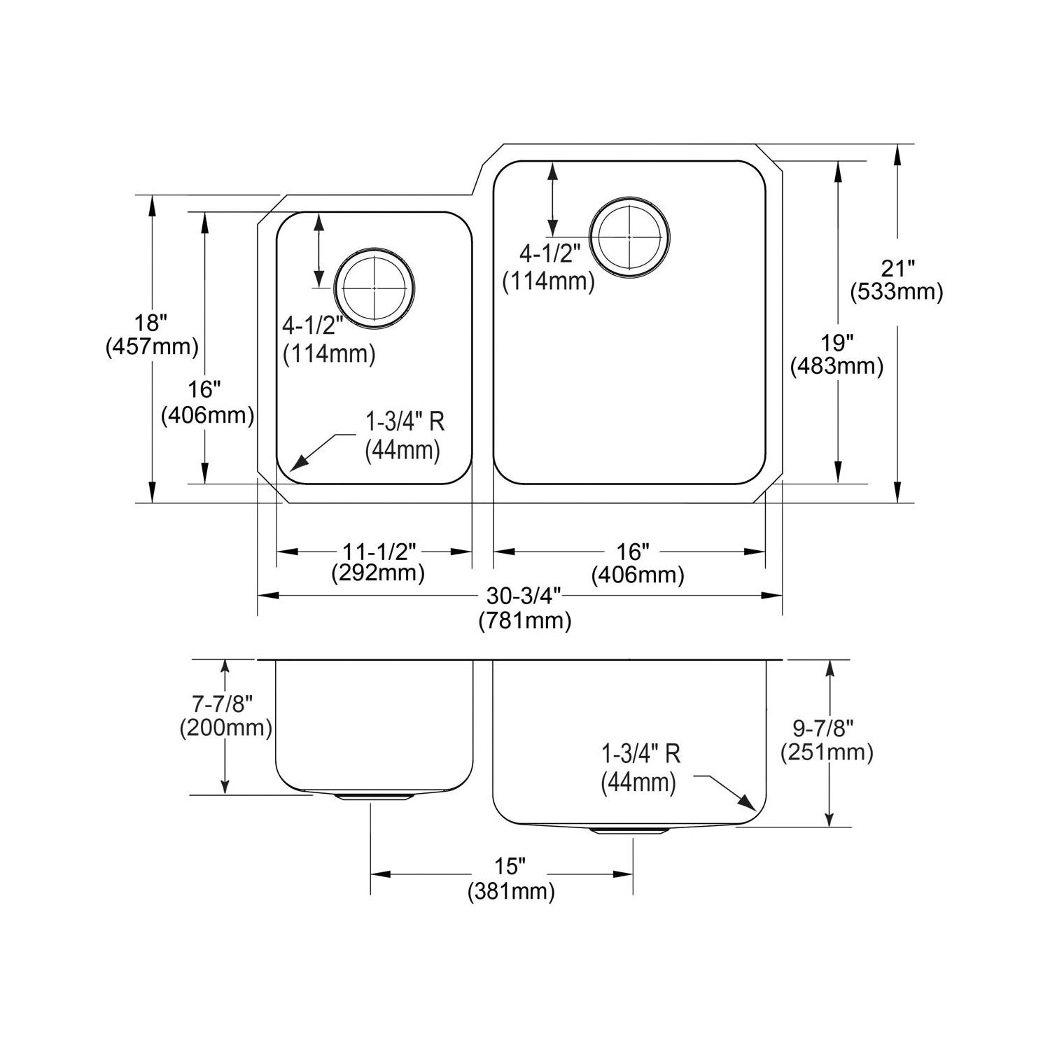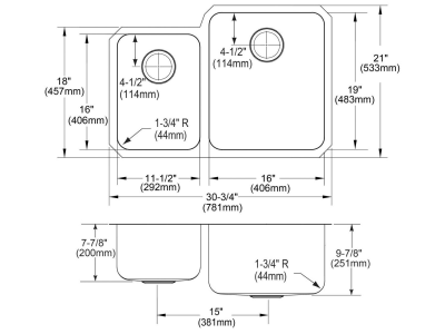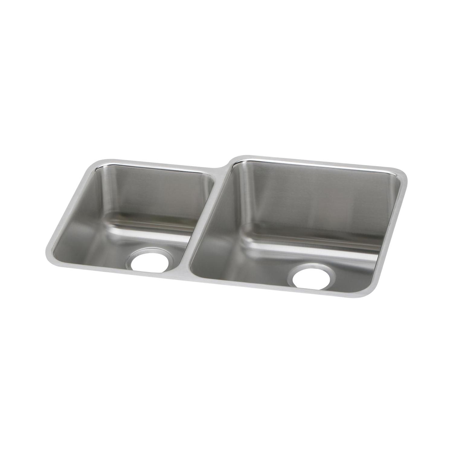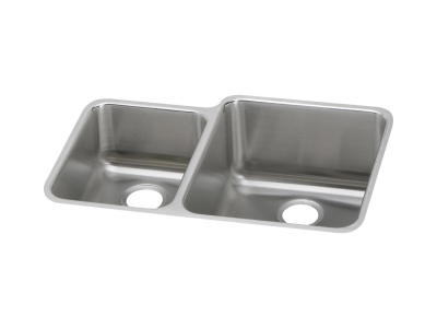 Elkay®, ELUH3121L, Kitchen Sink, Offset, Lustertone™ Classic Collection, Rectangle Shape, 11-1/2 in Left, 16 in Right Bowl Length, 16 in Left, 19 in Right Bowl Width, 7-7/8 in Left, 9-7/8 in Right Bowl Depth, 3-1/2 in Drain Opening, 2 Bowls, 30-3/4 in L x 21 in W x 9-7/8 in H Overall, Undermount Mounting, 18 ga 304 Stainless Steel, Domestic