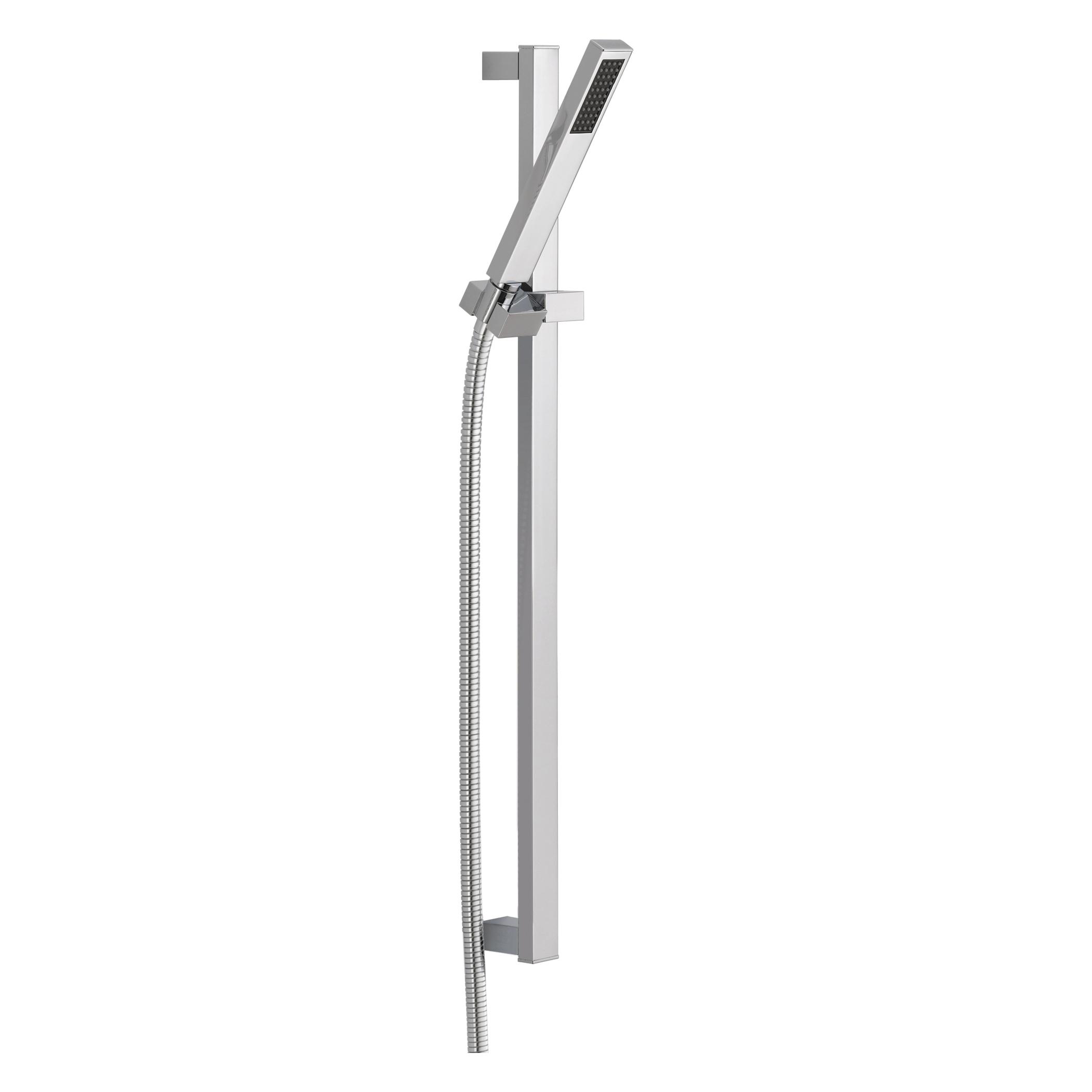 DELTA® Hand Shower, Premium, Vero®, Shower Head Patterns: 1-Function, 2 gpm, 60 to 82 in Hose Length, Full Body Spray, 80 psi, Metal Hose, Plastic, Polished Chrome, With Slide Bar Yes/No: Yes, Import