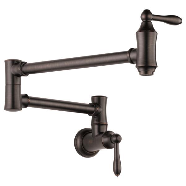 DELTA® 1177LF-RB Traditional® Pot Filler Faucet, 4 gpm Flow Rate, Swivel Spout, Venetian Bronze, 2 Handles, Import