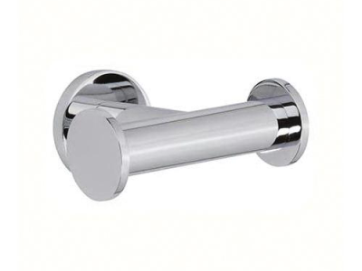 Ginger® Robe Hook, Series: Model 4610D, Kubic, 2 Hooks, 1-3/4 in Base Dia, 3-1/2 in Overall Width, Wall Mount, Solid Brass, Polished Chrome