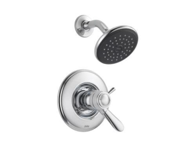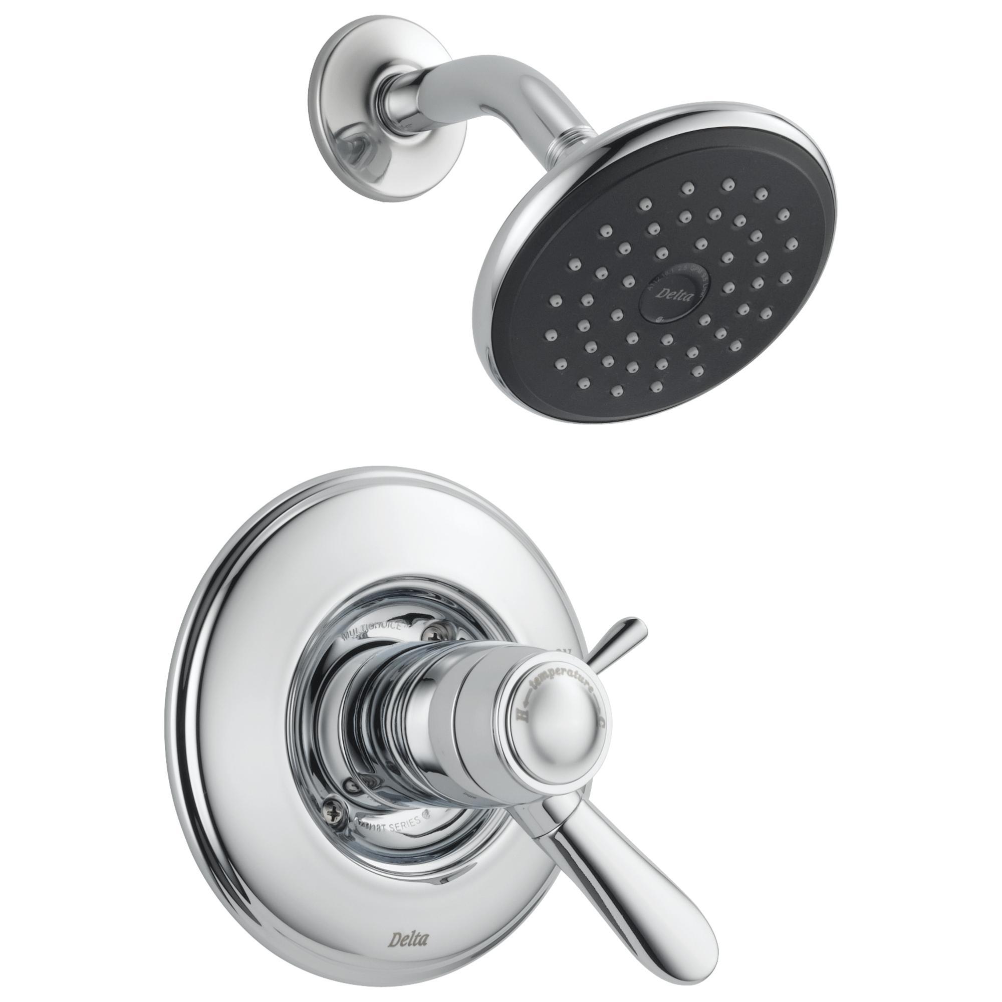 DELTA® Shower Trim, Series: TempAssure® 17T, Lahara® Collection, 2.5 gpm Shower Flow Rate, 2 Handles, Lever Handle, 7 in Dia Trim, 1222 Pressure Balanced, Hand Shower: No, Spray Pattern: Full, Wall Mounting, Zinc, Polished Chrome, Commercial Commercial/Residential