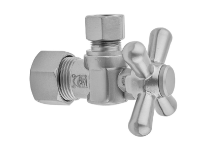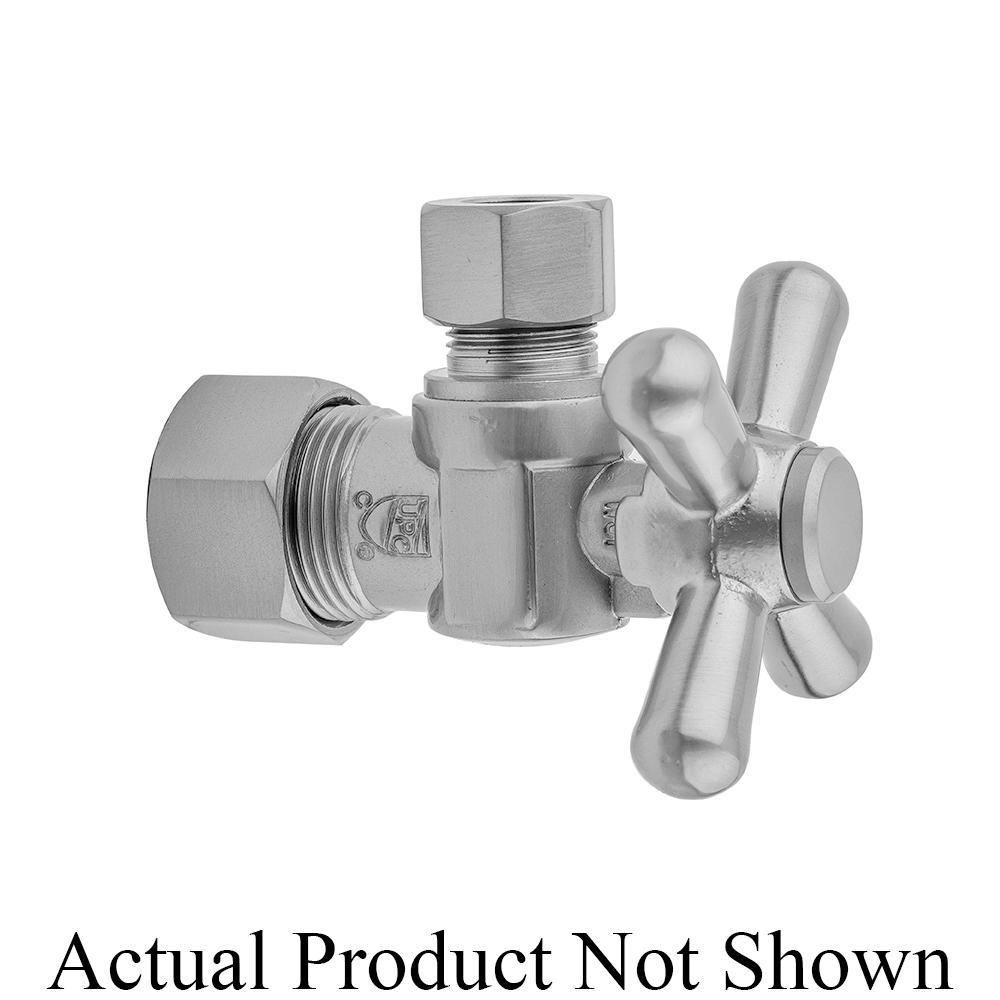 Jaclo® 621-PN 1/4 Turn Angle Pattern Contemporary/Modern Supply Ball Valve With Standard Cross Handle, 5/8 x 3/8 in Nominal, OD Compression x OD End Style, Solid Brass Body, Polished Nickel, Domestic