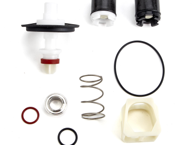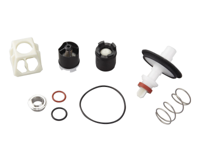 This total repair kit provides all the parts necessary to replace the major internal components of the applicable reduced pressure backflow assembly. This kit consists of a cover O-ring, first and second check assemblies, seat, seat O-ring, stem and diaphragm assembly, stem O-ring, and RV spring.