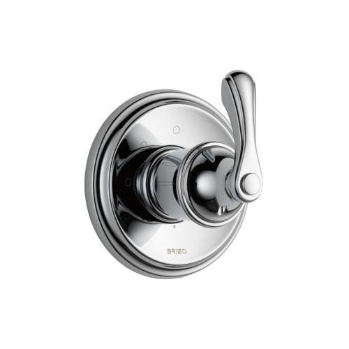 Brizo® Diverter Trim, 3-Function, Collection: Charlotte®, Lever Handle, 4-1/2 in Dia Trim, 1/2 in Valve Inlet, 1/2 in Valve Outlet, Hand Shower Yes/No: No, Wall Mount, Zinc, Polished Chrome, Domestic