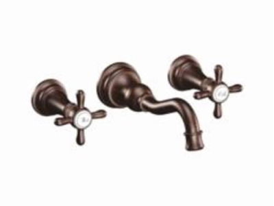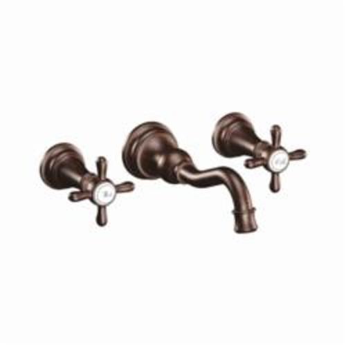 Moen® Bathroom Faucet, Series: TS42112, Weymouth™ Collection, 1.2 to 1.5 gpm Flow Rate, 8 in Center Distance, Fixed Spout, 7.84 in Spout Reach, 5-1/4 in Spout Height, Cross Handle, 2 Handles, Pop-Up Drain, 3 Faucet Holes, 1/2 in Connection, C Connection, Function: Traditional, Wall Mounting, 1224 Ceramic Disc Cartridge, 11 in W x 3 in D x 2-1/2 in H Dimensions, Metal, Oil Rubbed Bronze, Domestic