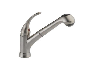 DELTA® Kitchen Faucet, Foundations®, 1.8 gpm, 8 in Center Distance, Swivel Spout, 8-3/4 in Spout Reach, 8-29/32 in Spout Height, Lever, 1 Handles, No Side Spray(Y/N), 1 Faucet Holes, 1-5/16 to 1-1/2 in Faucet Hole, 1/2 in, IPS, 2-1/2 in Maximum Deck Thickness, Deck Mount, Washerless Ball Valve/Cartridge, Zinc, Stainless Steel, Import