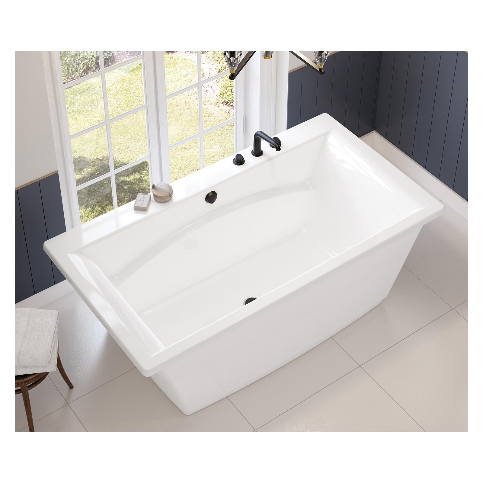 MAAX®, 105742-000-001-100, Bathtub Without Jet, 2-Piece, Series: 105742, Optik® 6636 F Collection, Chromatherapy Bath Therapy, 66 in Length, 36 in Width, 24 in Height, 48 to 69 gal Water, Center Drain Location, 37-3/8 x 16-1/2 in Bottom Basin Bathing Well, Freestanding Mounting, Acrylic, White