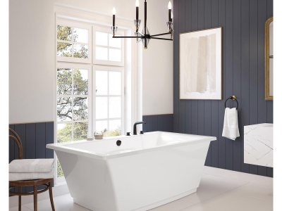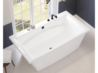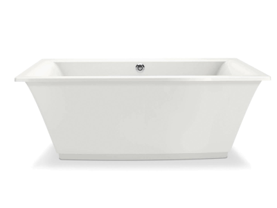 Discover the elegance of the MAAX Optik 6636 F freestanding bathtub with a symmetrical rectangular shape that unites straight and curved design elements. A high gloss non porous surface supports easy cleaning and lasting durability while a reclining backrest and integrated armrests ensure exceptional comfort. Stylish and practical this bathtub elevates any modern bathroom sanctuary.